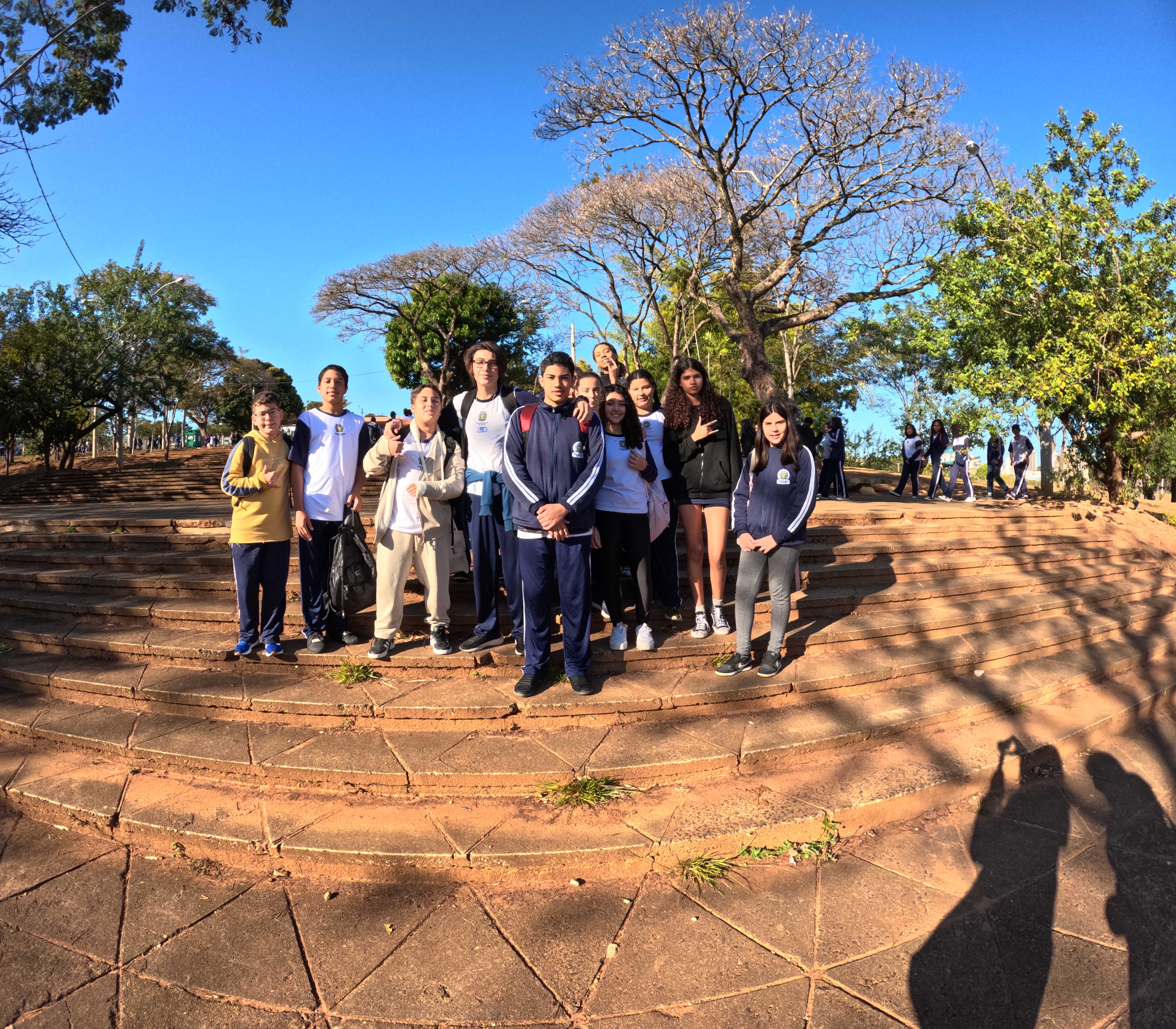 Quando nós chegamos na nossa escola, nos deixaram esperando na secretaria até o ônibus chegar. Quando ele chegou, nós fomos levados até a outra escola, EMEF Violeta, para pegar os alunos de lá, depois fomos até o ginásio de esportes e lazer (Ginásio Poliesportivo do Taquaral).